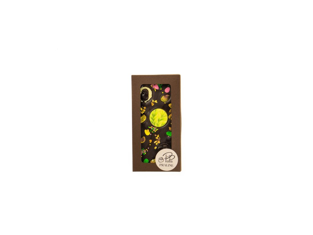 Tato čokoláda je zdobena krásnými velikonočními motivy, které jsou ideálním doplňkem pro váš velikonoční stůl, nebo skvostným dárkem pro vaše blízké. Ať už si ji vychutnáte sami, nebo ji darujete jako symbol svátečního kouzla, její bohatá chuť vás nezklame.