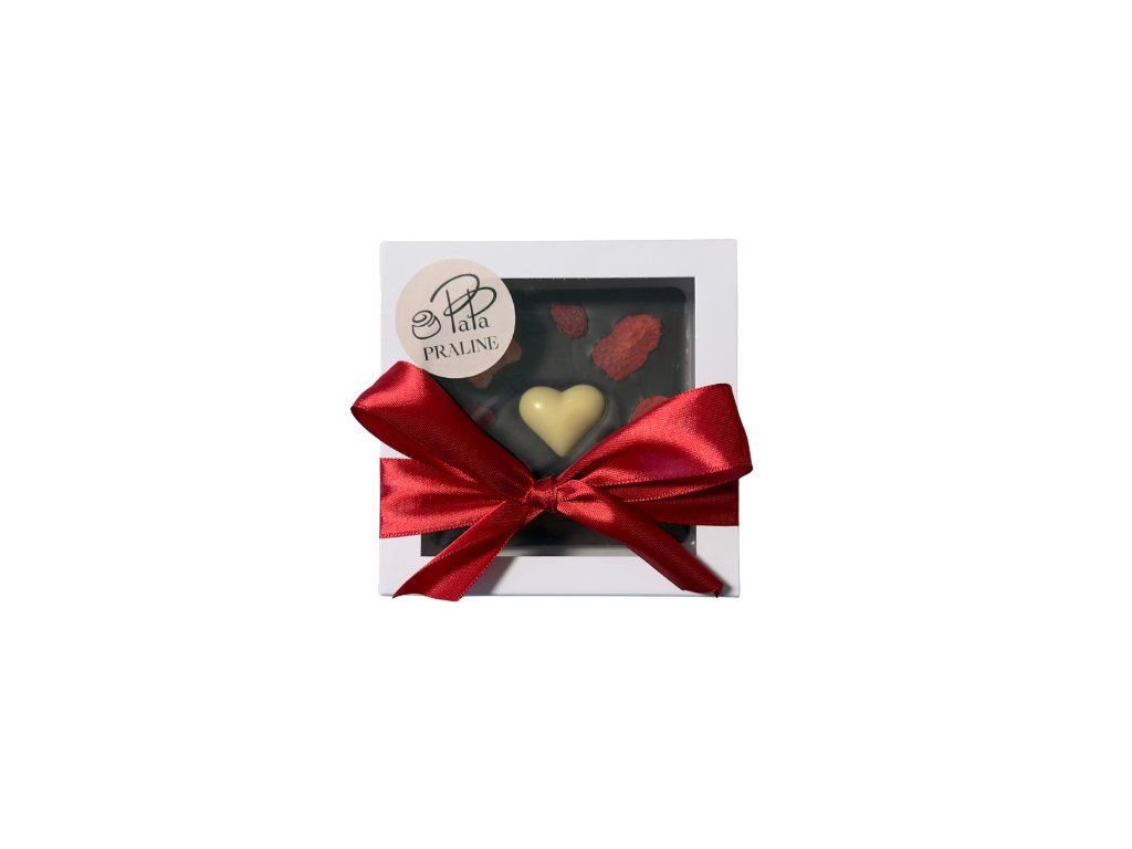 Malý kousek radosti je ručně vyráběná 60g hořká čokoláda, zabalená do elegantní krabičky s mašlí. Vyberte si svůj oblíbený posyp - ořechy nebo lyofilizované ovoce (maliny, jahody). Tato čokoláda je perfektní dárek pro malé chvíle radosti, které potěší nejen chuť, ale i srdce.