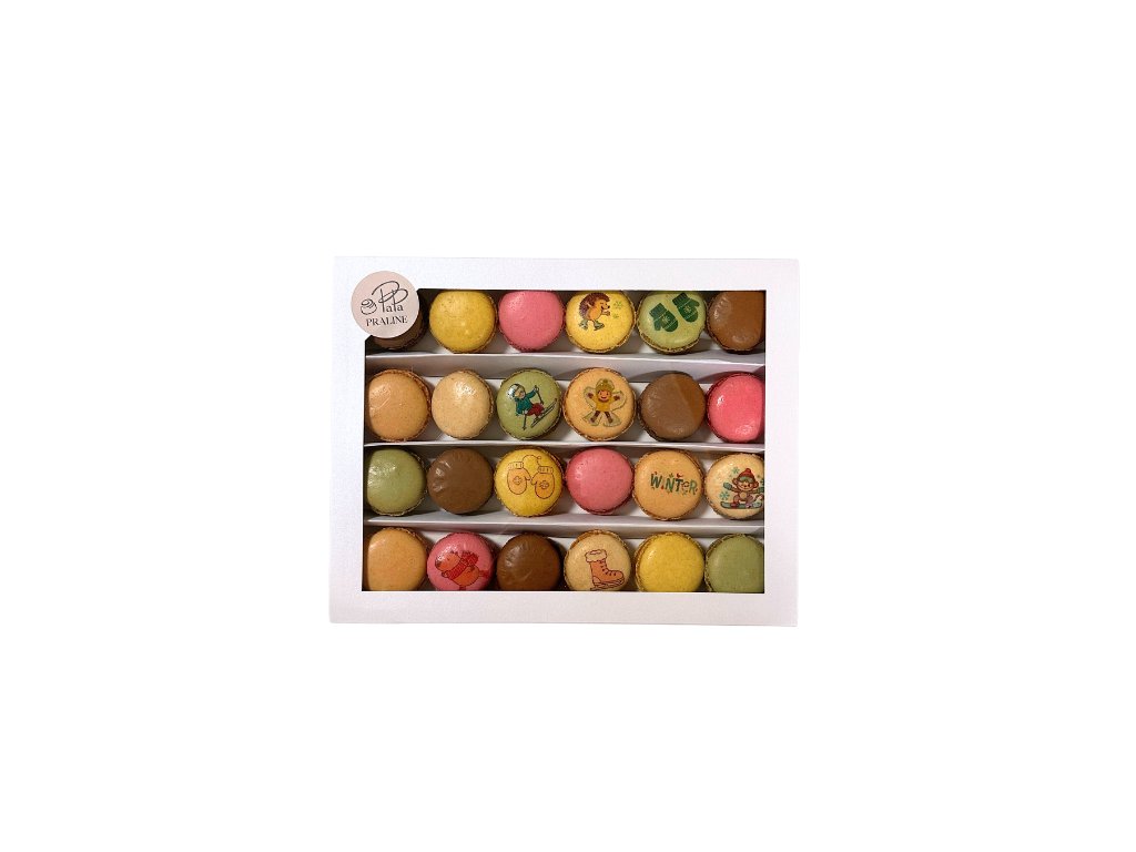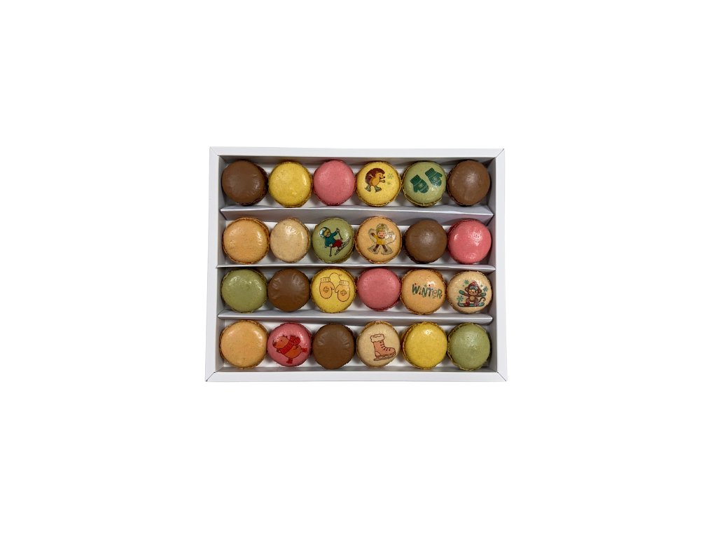 Zima chutná nejlépe, když se o ni můžete podělit ❄️💛 Zimní velký box makronek spojuje to nejlepší z naší zimní kolekce – všechny oblíbené příchutě i všechny hravé zimní motivy, které znáte z mini boxů. Najdete v něm kapibaru na bruslích, ježečka na bruslích, opičku na snowboardu i makronky s nápisem Winter Time. Tento box je ideální jako slavnostní pohoštění, sladký středobod zimní oslavy nebo luxusní dárek, který udělá dojem na první pohled. Jemné mandlové skořápky, poctivé krémy a vyvážené chutě zaručí, že si každý najde tu svou oblíbenou. Obsah balení (24 ks makronek – mix příchutí): čokoláda, vanilka, slaný karamel, pistácie, malina, citrón. ❄️ Limitovaná zimní edice